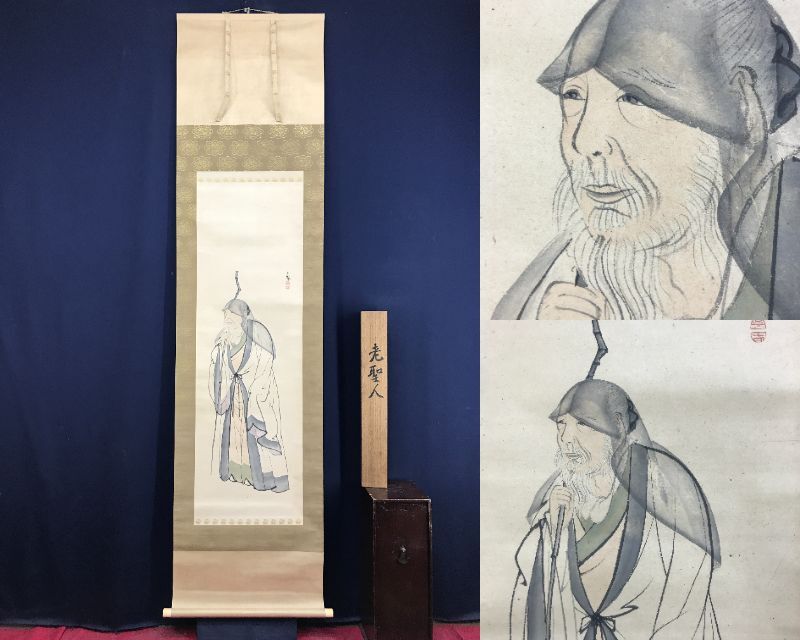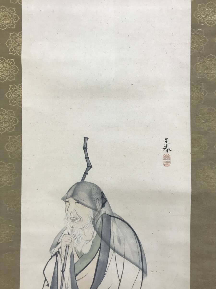 真作/松村呉春/老聖人図/聖人図/人物図/僧侶/掛軸☆宝船☆AF-145