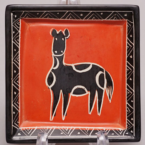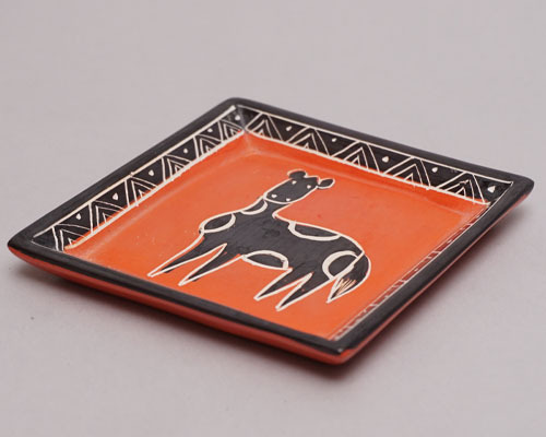 柔らかく加工しやすい石を削って作られた動物柄の角皿です。