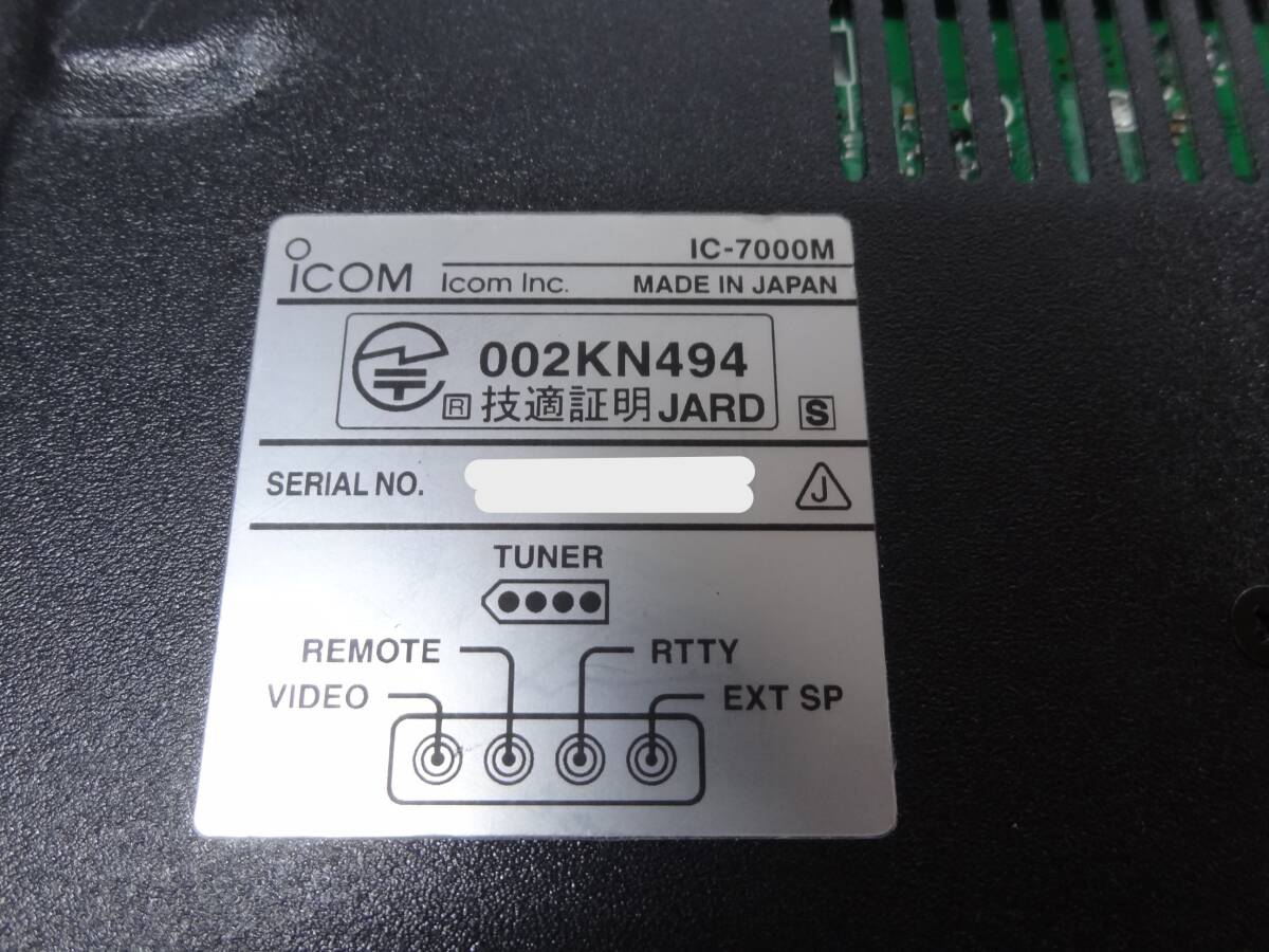 〈I COM〉 HF/VHF/UHF トランシーバー IC-7000(M) AT-180 | ||||