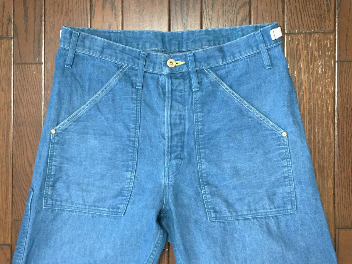 ワールドワーカーズ WORLDWORKERS 麻混 巻き デニム ワークパンツ S ボタンフライ 日本製