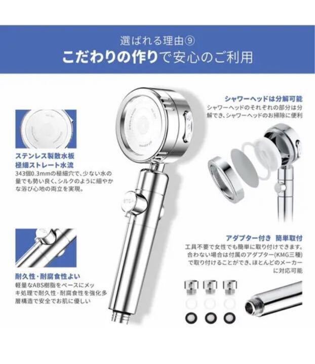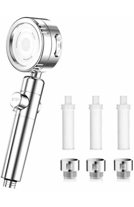 【アダプター付属 簡単取付【セット内容】シャワーヘッド本体X1、アダプター(KMG)X3、浄水用フィルターX3(出荷時、1本のフィルターはシャワーヘッド内に装着済)、日本語説明書X1。