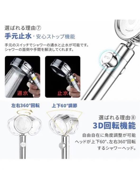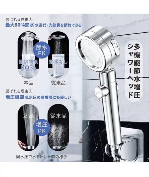 【節水増圧機能&極細水流】シャワーヘッドのノズル部分は節水できるLUV技術と精密な散水板を採用しており、最大80%の節水効果を実現しました!従来のシャワーより少ない水量で、同等以上の使用感が得られます。同時に、水道代光熱費を節約できます。家計にも優しいです!また、空気増圧機能付き、普通の水よりも快適で、柔らかくて、水圧の低い施設高層階でも快適な水の勢いでご使用いただけます。【極細ストレート水流】0.3mmの極細穴を採用し、穴数343個、穴の目が細かく数も多いので、少ない水の量でも勢い良く、シルクのように細やかな浴び心地の両立を実現します。お子様にも安心してご利用頂けます。ペットのシャンプーにも最適です!