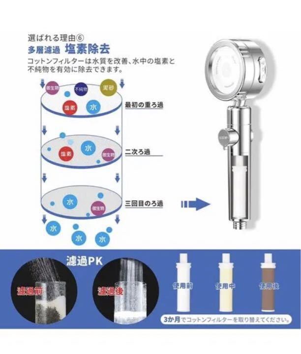 【浄水フィルター付き 多層濾過 塩素除去】精密なPP綿フィルターが付属します。水中の塩素、バクテリア、スケール、有機物などの残留物質ではなく、水中の不純物や浮遊物質などの小粒子を効果的にろ過できます。浄水フィルター3本付属します。3か月でコットンフィルターを取り替えてください。