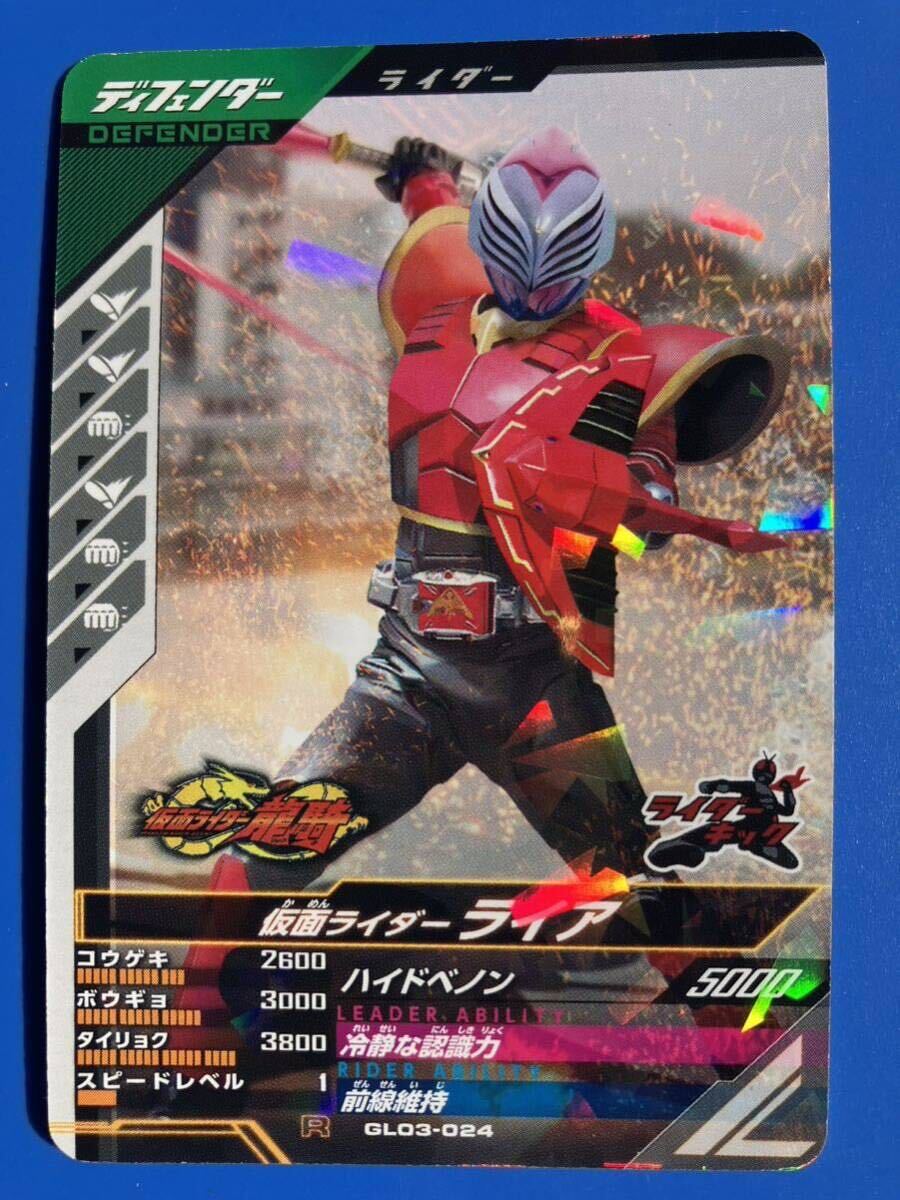 仮面ライダー、ガンバレジェンズの第GL03弾から、No.024、ディフェンダーカード《仮面ライダーライア》の登場です。発送は、普通郵便を利用します。(特にご希望のない場合)おとりまとめも可能ですが、送料に変動する場合がございます。また、送料のご請求は、自宅での計量を基準にご請求させていただいておりますので、実際の金額と差異が出る場合もございます。予めご了承ください。他にも多数出品中です。まとめてこの機会にいかがでしょうか?ご質問お待ちしております。
