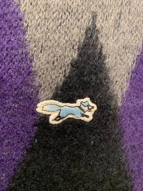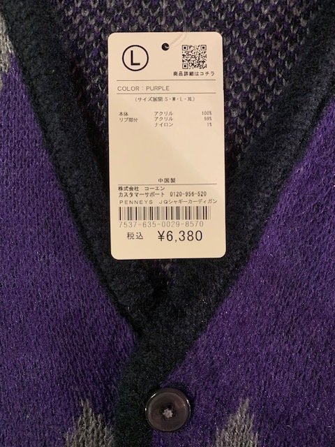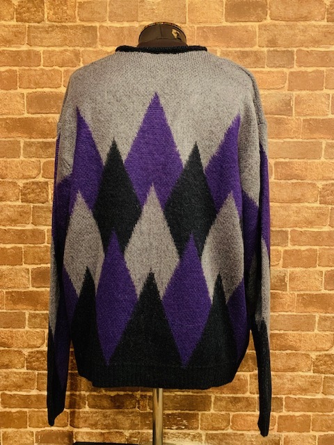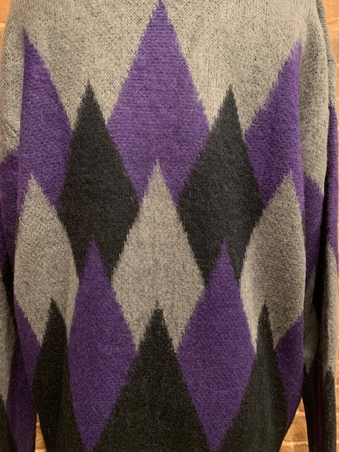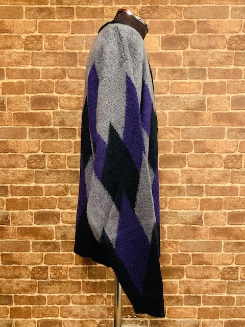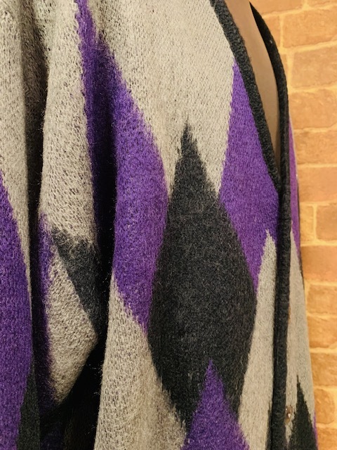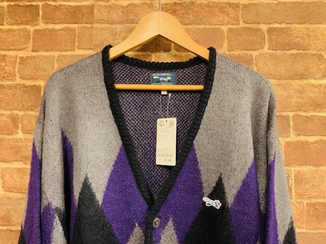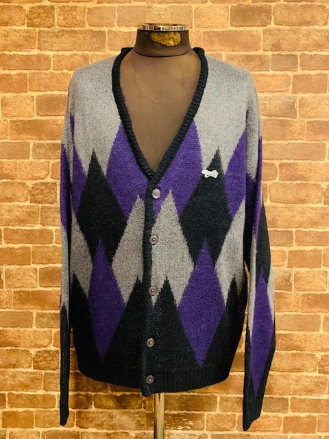 ★表記L/新品!ペニーズ.Penneys.ダイス柄モヘア風シャギーニットカーディガン.紫.80'sカートコバーンヴィンテージグランジロックスタイル