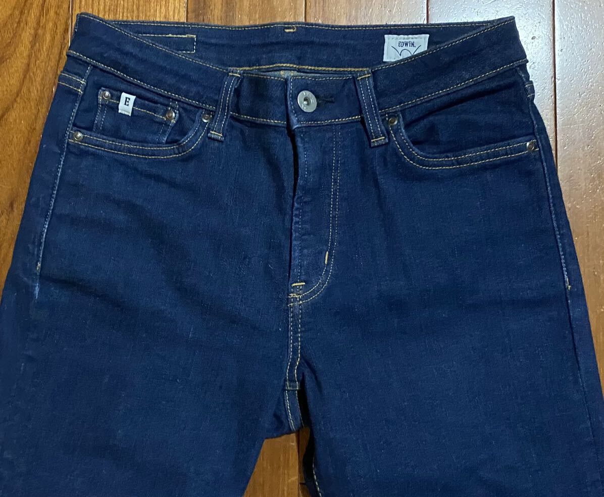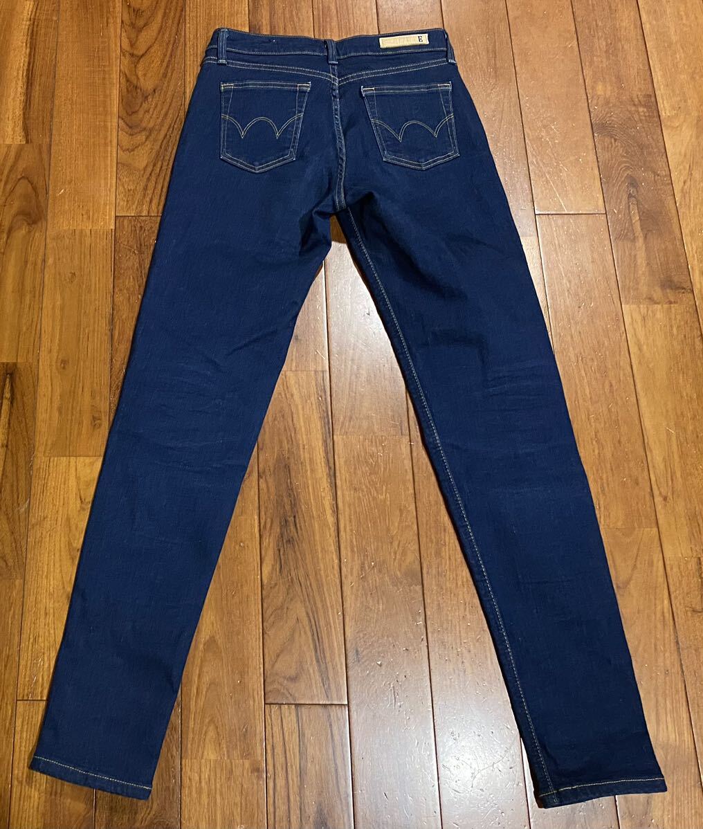 エドウィンのストレッチスキニーデニム(ジーンズ)、ED022Lです。色はインディゴブルーです。USEDですが状態は良いです(10段階中8程度)。生地はストレッチ入りで綿90%、ポリエステル7%、ポリウレタン3%です。牛革パッチ、ジッパーフライ、裾はチェーンステッチです。正規品です((株)エドウイン、日本製)。サイズはSでウエストは重ねずに平置きで約67cm、ヒップ約84cm、股上約23cm、股下約75cm、股下15cmのふともも部分約44cm、裾まわり約26cm、重量約490gです。発送はゆうパケットポストになります。