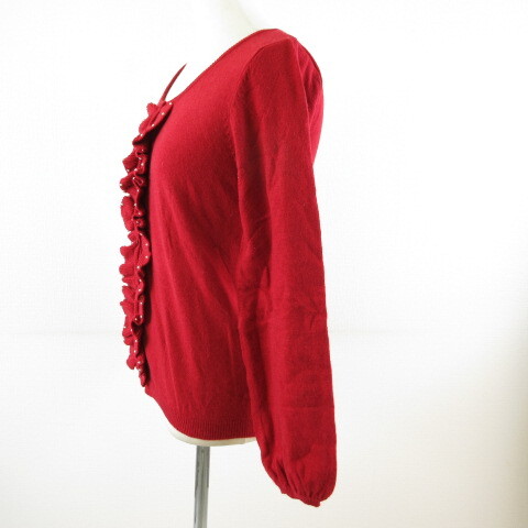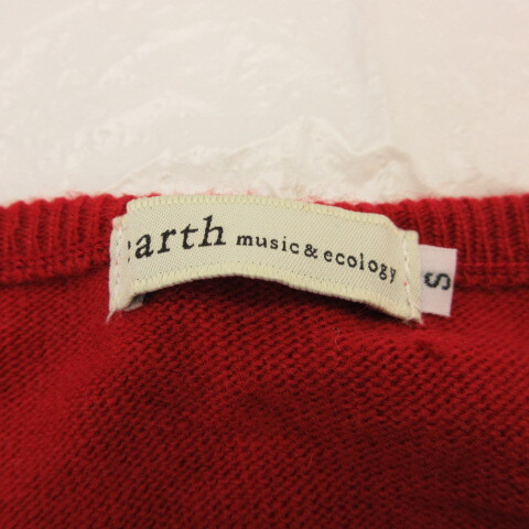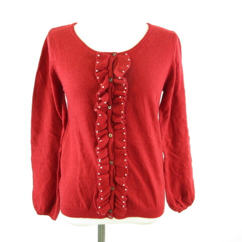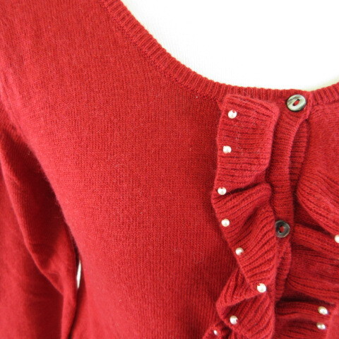 アースミュージック&エコロジー EARTH MUSIC & ECOLOGY ニットカーディガン 長袖 フリル 赤 S *T755 レディース