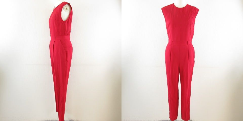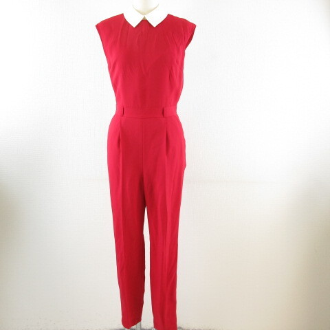 ドレアング DreAng オールインワン ロングパンツ ノースリーブ 衿付き 2way 赤 S *T736 レディース