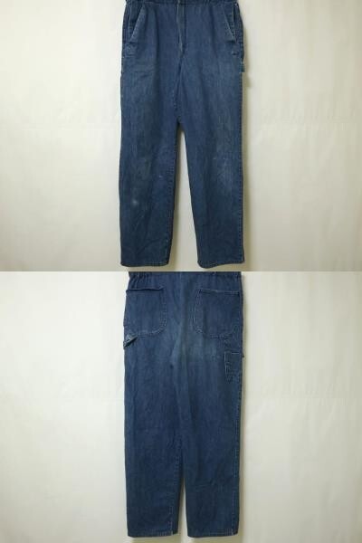 お尻に色落ち、背面右側に小キズ、背面右袖に織りキズ&ピンホール、ところどころにペンキの付着・色抜け・アタリ等が見られます。着用感はありますが古着に慣れている方であれば、まだまだご使用頂ける状態だと思います。 (写真をご覧ください、可能な限りダメージ等掲載しております。)