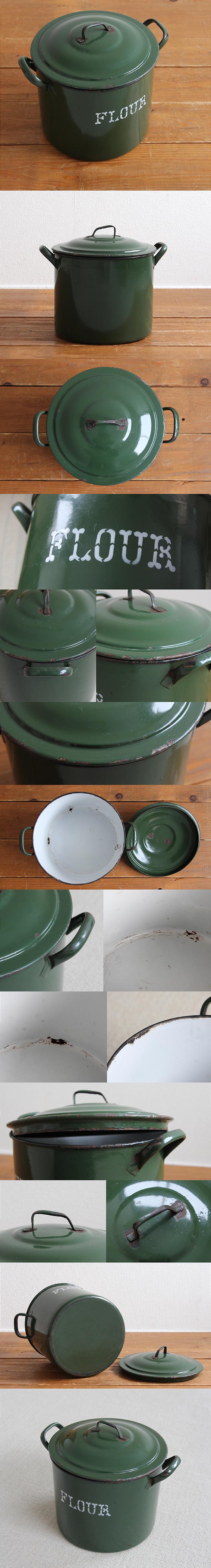 イギリス アンティーク ホーローフラワー缶 FLOUR 小麦粉 キャニスター「グリーン」P-258