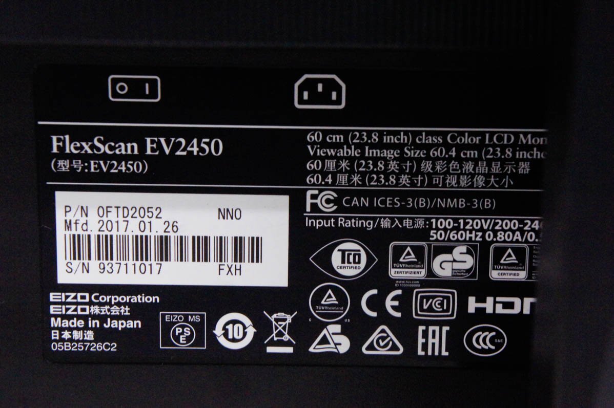 | EIZO エイゾー 23.8インチ液晶モニター FlexScan EV2450 使用時間7535H | |||