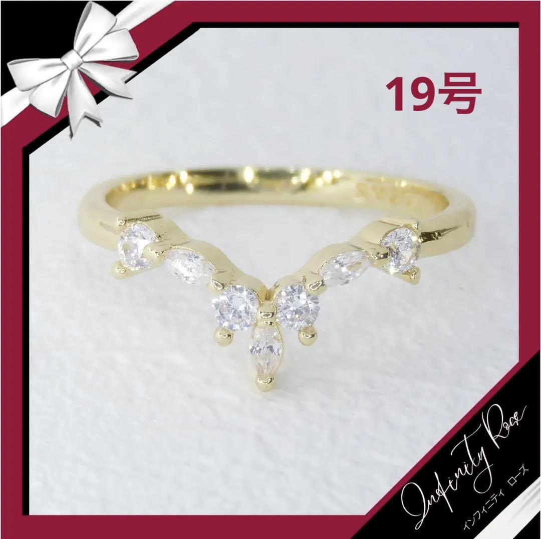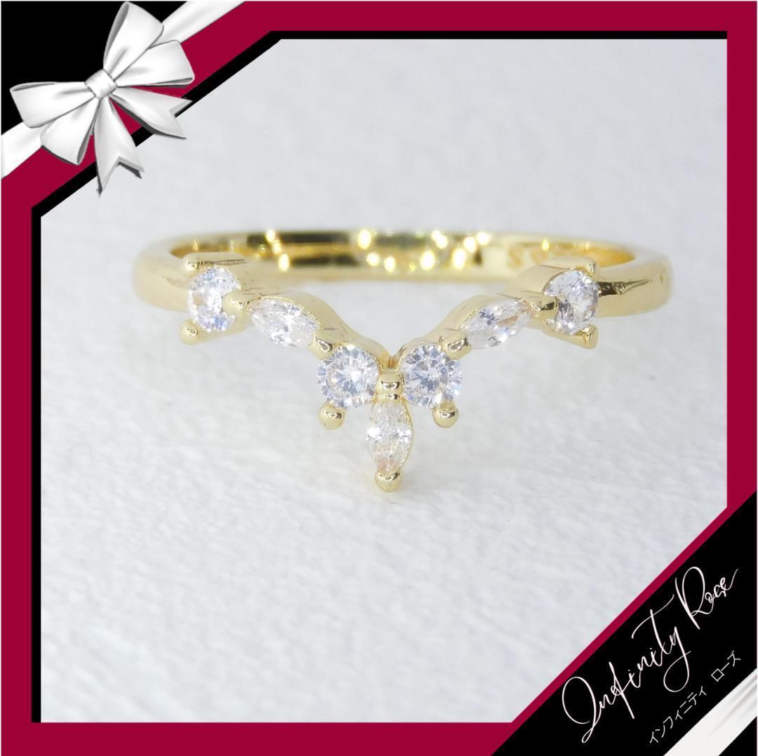 (R066G)19号 ゴールド細身大人ティアラクリスタルリング  爪留め指輪