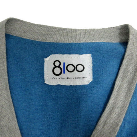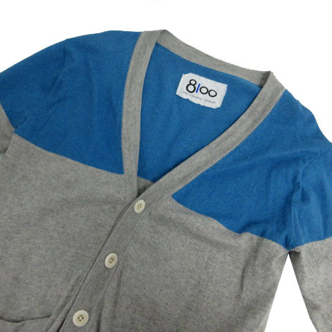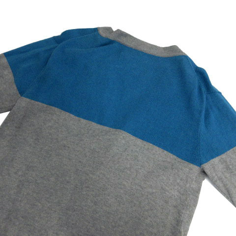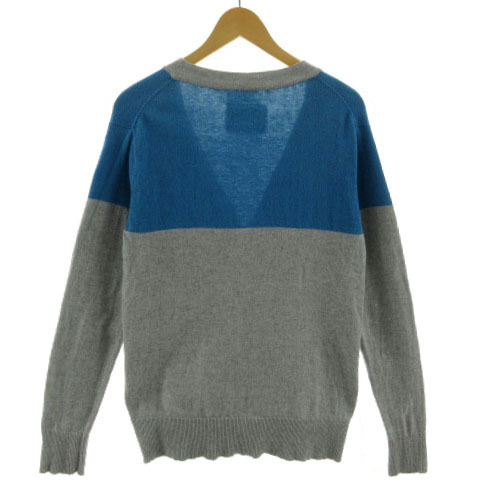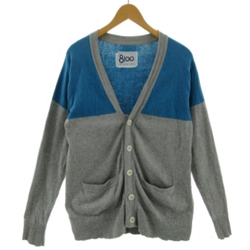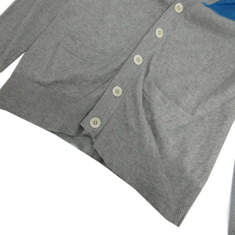 ロンハーマン Ron Herman 8100 カーディガン ニット 長袖 コットン混 配色 バイカラー グレー ブルー系 青系 S メンズ