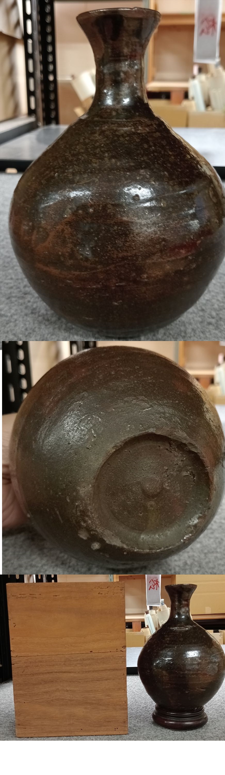 朝鮮古美術 李朝時代 黒高麗徳利 時代物 酒器 合箱 直径12cm 高さ18cm