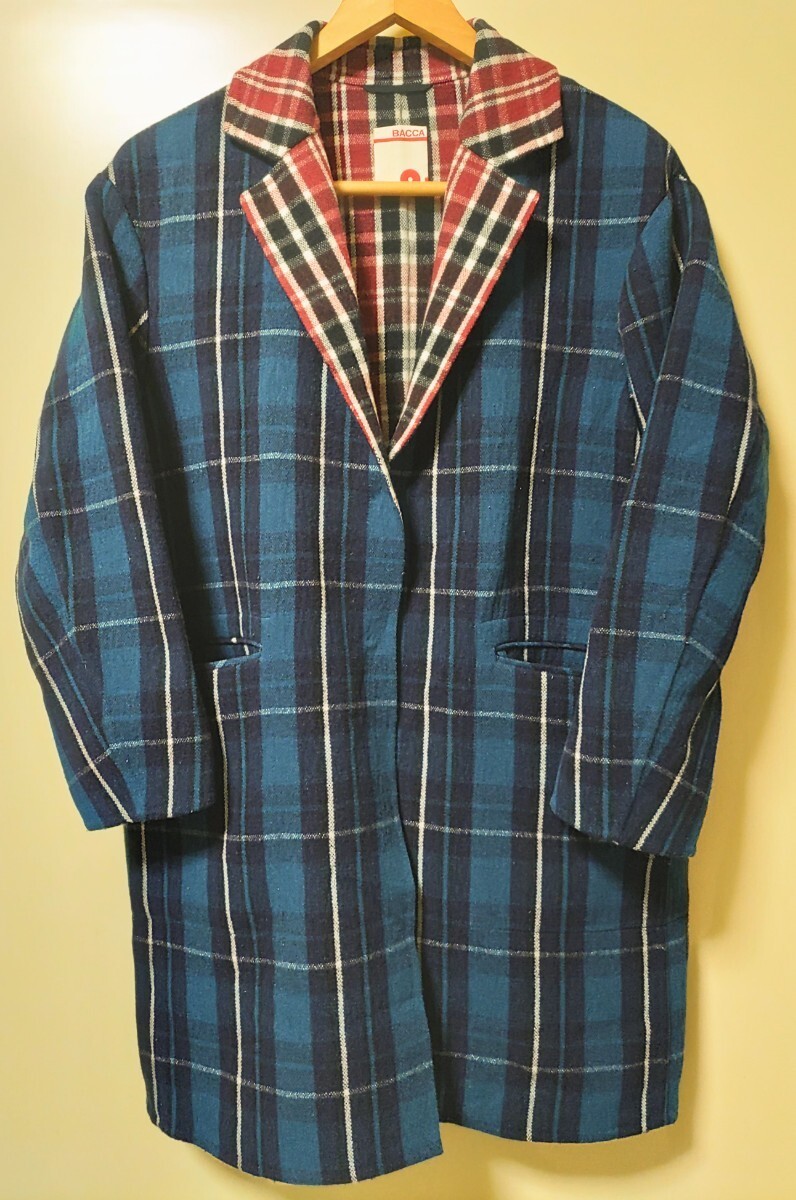BACCAバッカ38トゥモローランドTOMORROWLANDチェスターコートMタータンチェック ウールコート ネイビー 赤黒 テーラードジャケット 冬物