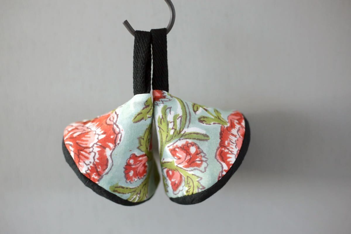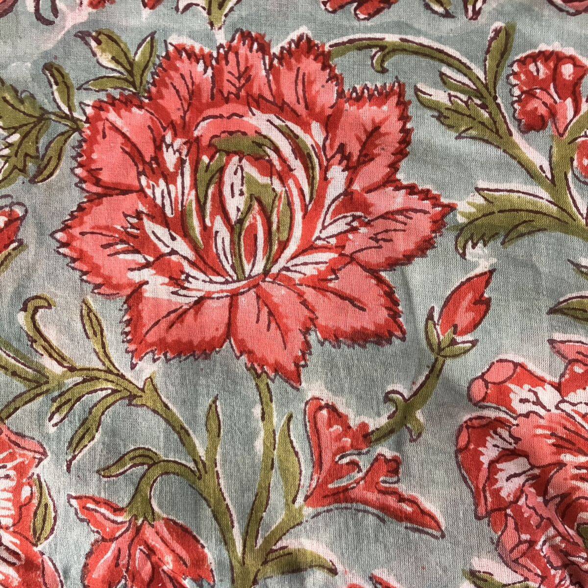 ブロックプリントの本場、インド郊外で作られた生地を使用。