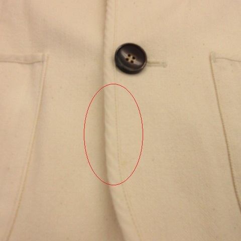 【状態】この商品には下記のようなダメージがあります。 ・衿まわりに2cm幅程度の薄茶の汚れ ・左衿下部分に5cm程度の薄い汚れあり ・前裾に2cm程度の薄い汚れあり ・左右の袖口まわりに薄い汚れあり その他に目立ったダメージはなくまだまだご使用いただける商品です。 ※あくまでも中古品ですので掲載写真や記載内容をご確認いただき、ご理解の上ご購入ください。