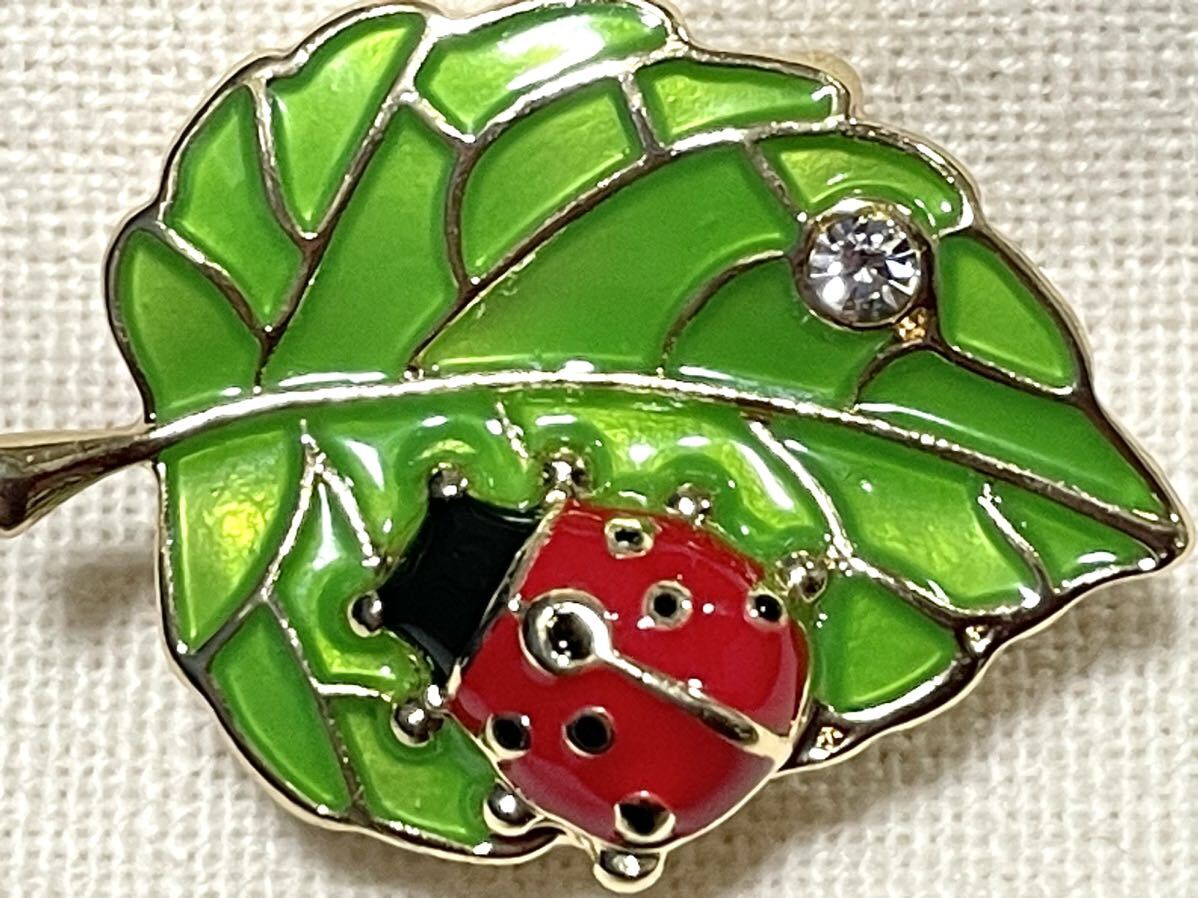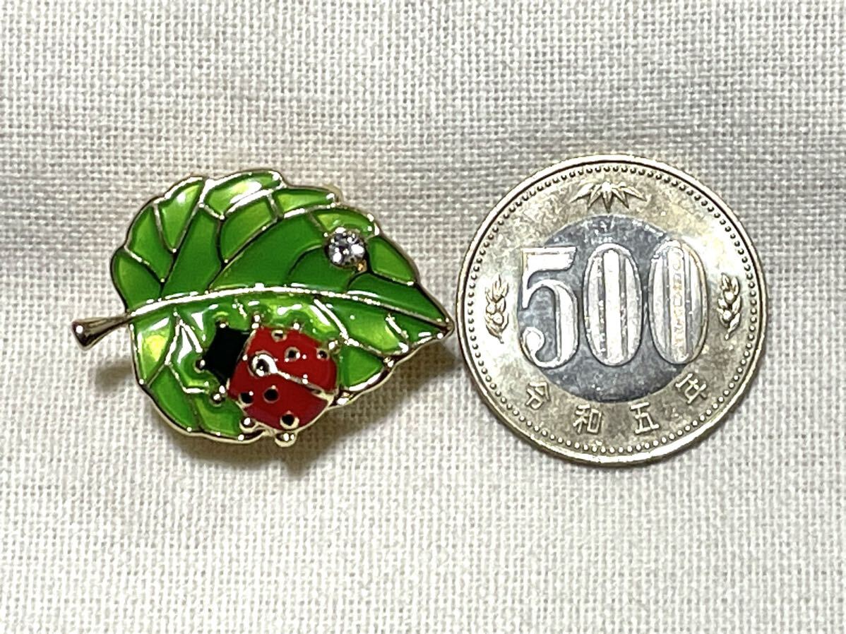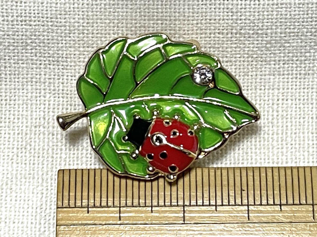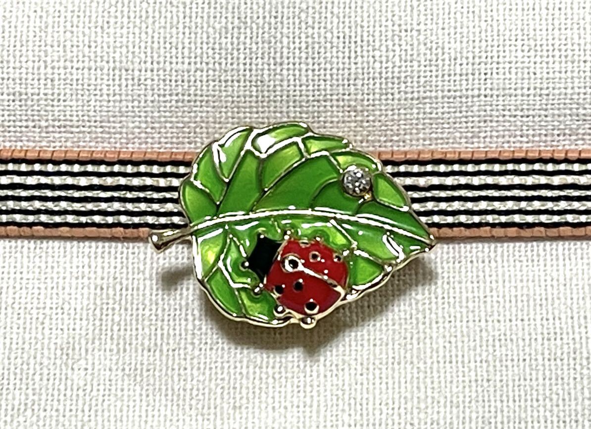 「葉っぱにてんとう虫」のアクセサリーを帯留めにリメイクしました。