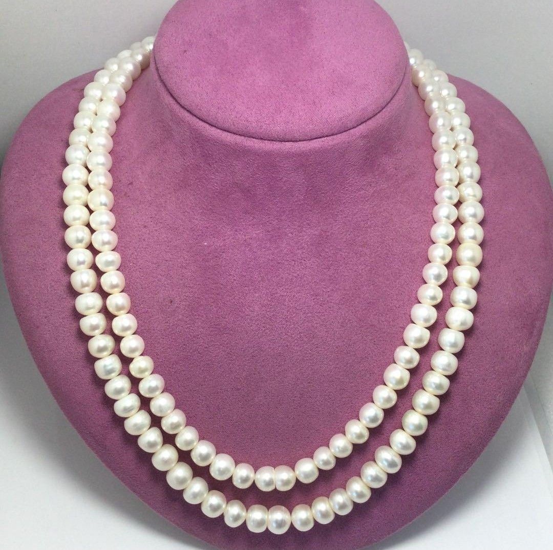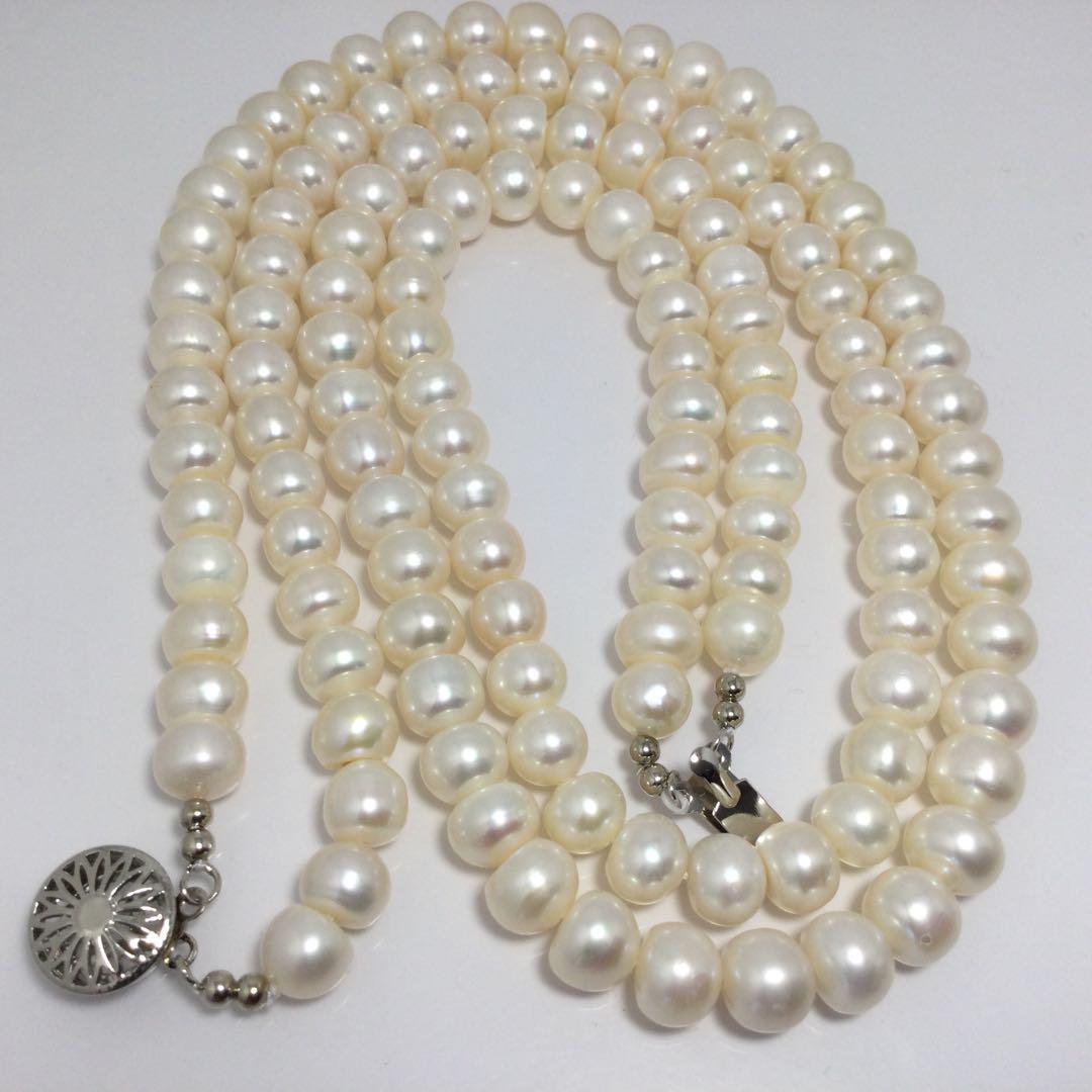 最新モテル作品本物真珠淡水パール2連ネックレス8-9mm冠婚葬祭フォーマル日常ファッション着用素敵天然色【既購ok送料無料】