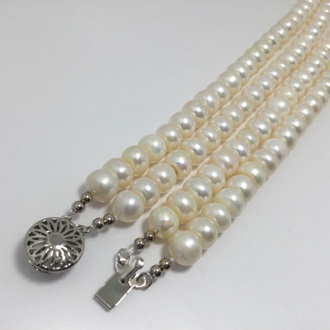 真珠淡水パールには、成長するの時間がかかるため、同じな物は有りませんので、色味と形などが異なります。