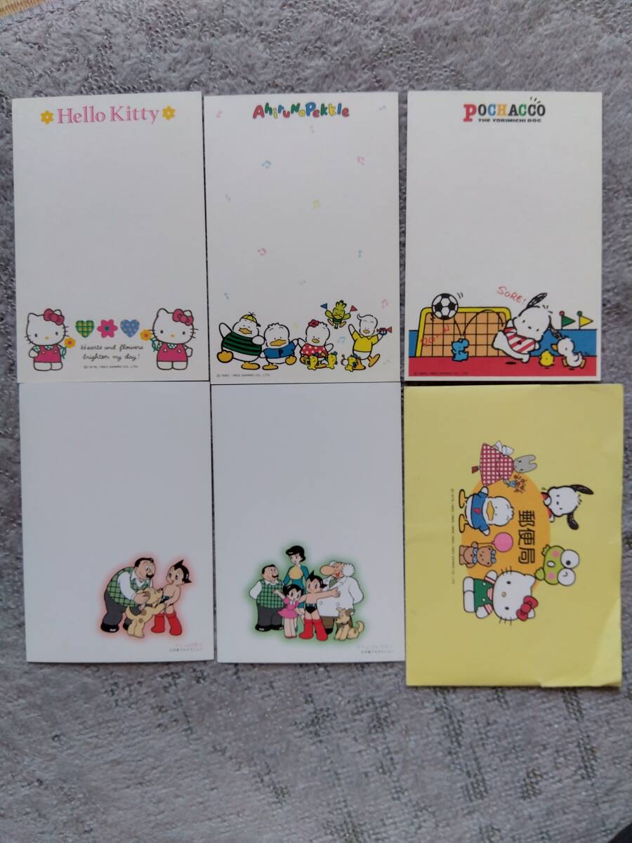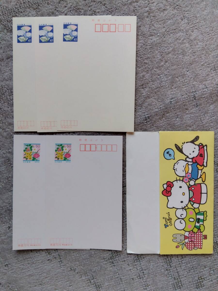 添付画像の通り、裏面にキャラクタ図柄の入った官製はがきとサンリオのはがき収納袋です。