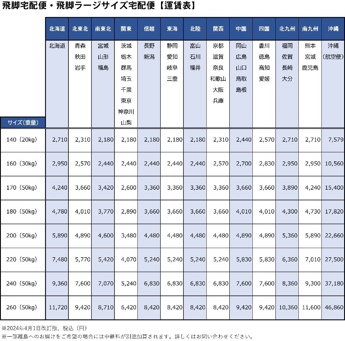 ◆料金表は目安です。集荷時の採寸や個数による変動はご容赦くださいませ。