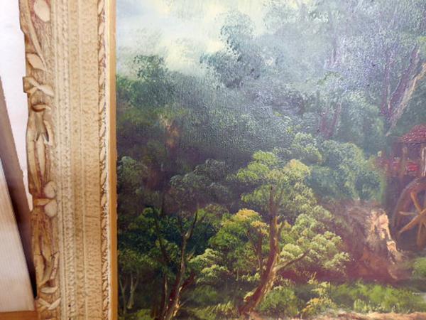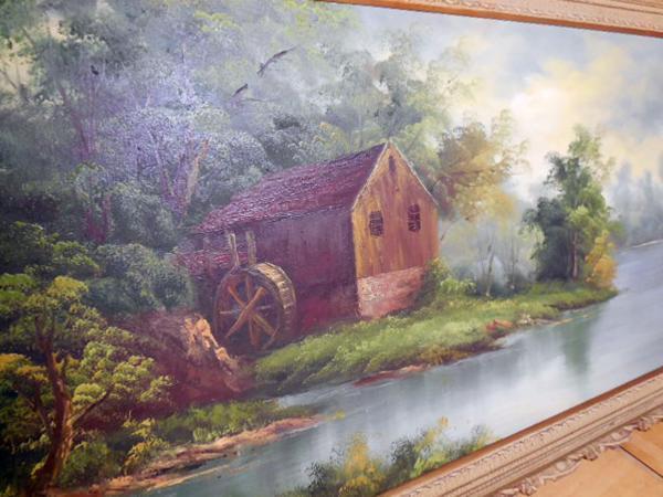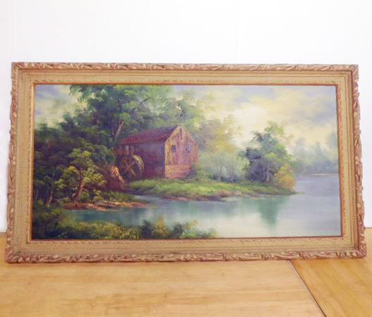 絵画 油絵 ◆ 風景画 水車 湖のほとり BLE 40号 ◆ 幅1315×奥行70×高さ740mm