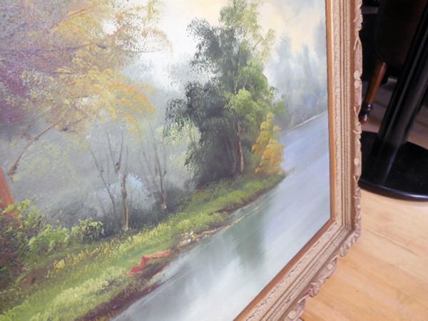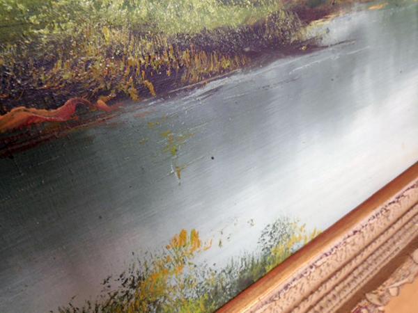 ◆静かな湖のほとりの風景を描いた作品です。横幅が131.5cmあり、迫力ある作品です。