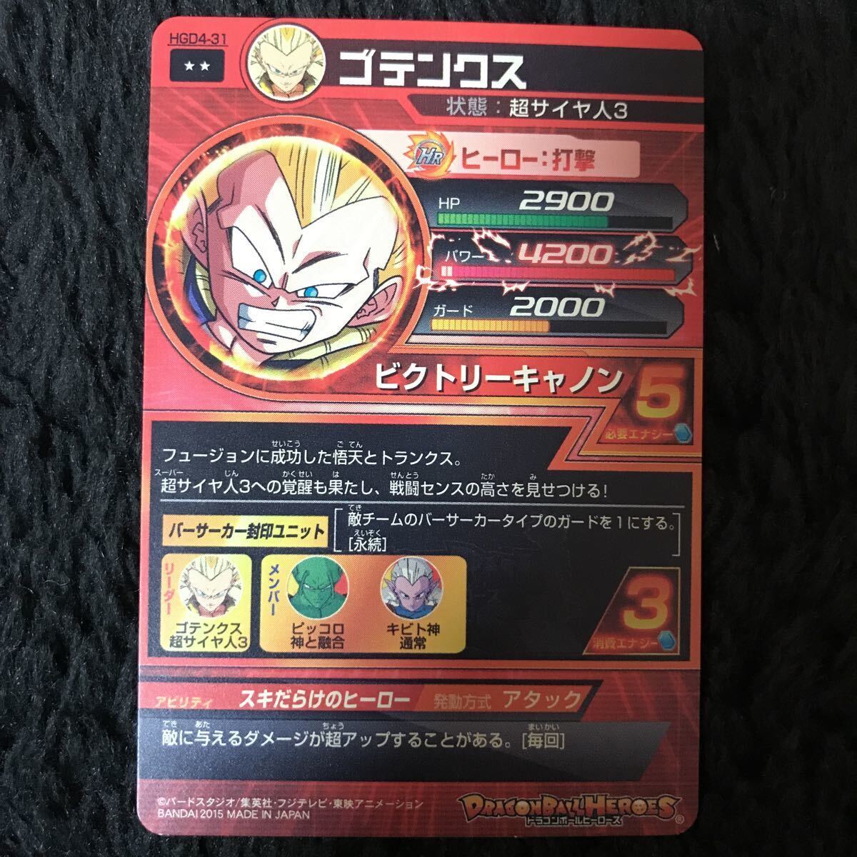 HGD4弾レア/ ゴテンクス(超サイヤ人3)/ HGD4-31/ 技:ビクトリーキャノン/ ドラゴンボールヒーローズ/ レアリティ:☆☆/ 2015 BANDAI