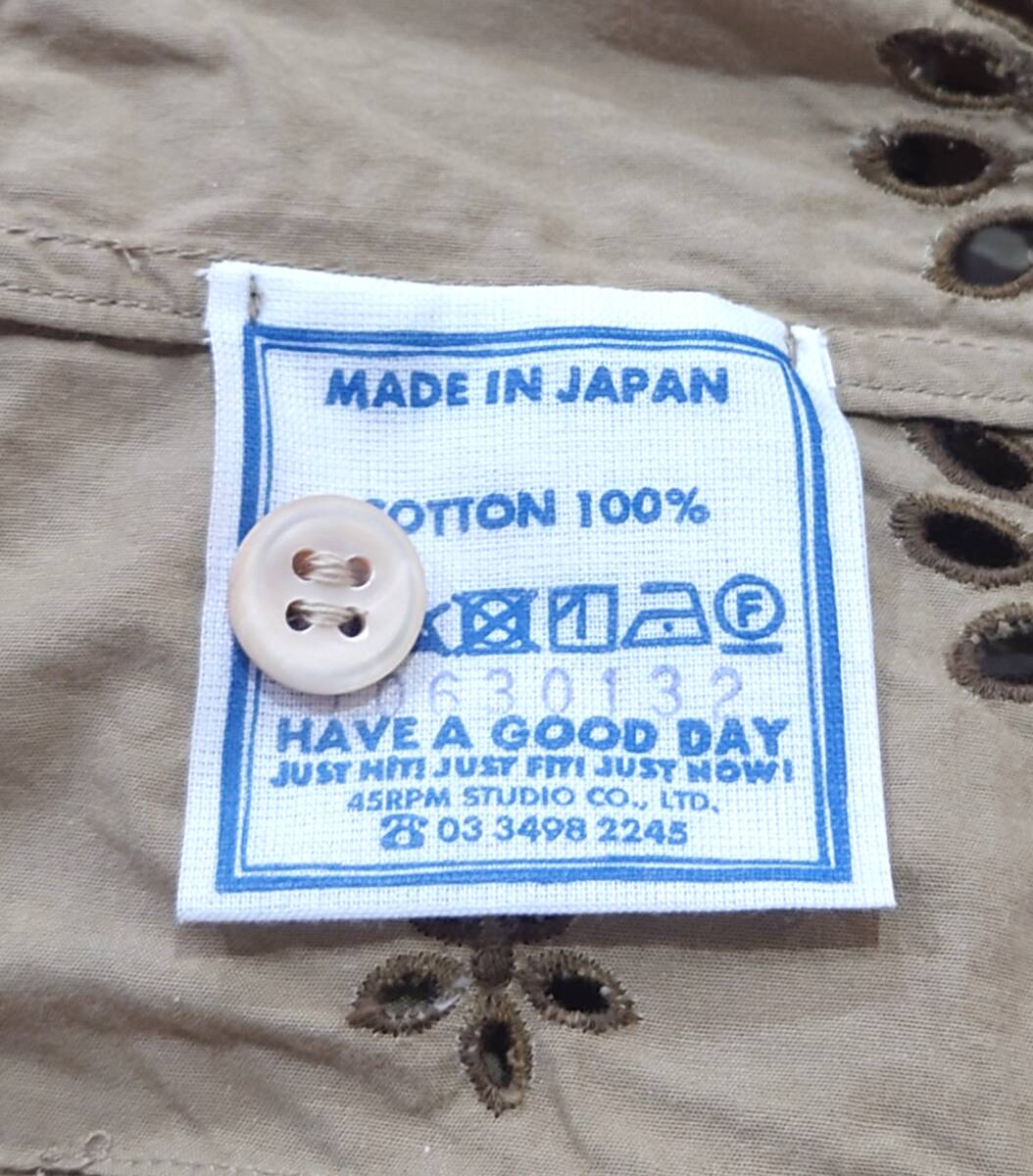 45R 45rpm ダンプカットワークの四角シャツ 刺繍 カットワーク ブラウス カーキ Y-326118