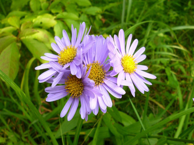 ノコンギクは道端によく自生しているキクです。白から薄紫色の花を咲かせます。地中茎で増殖するので群落をつくります。
