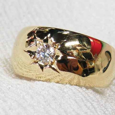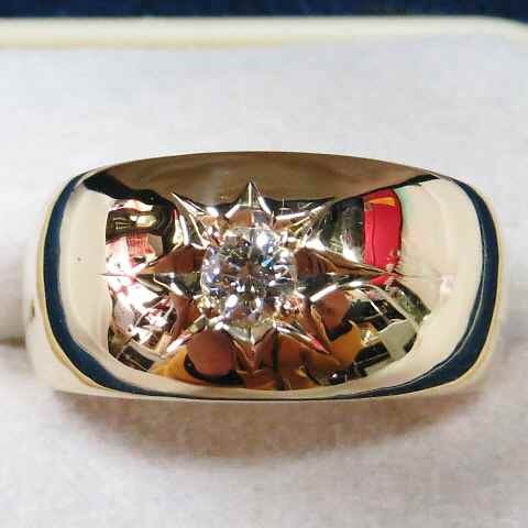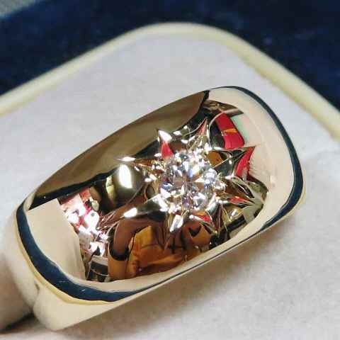 天然ダイヤ0,20CT☆K18YG製甲丸デザインリング☆
