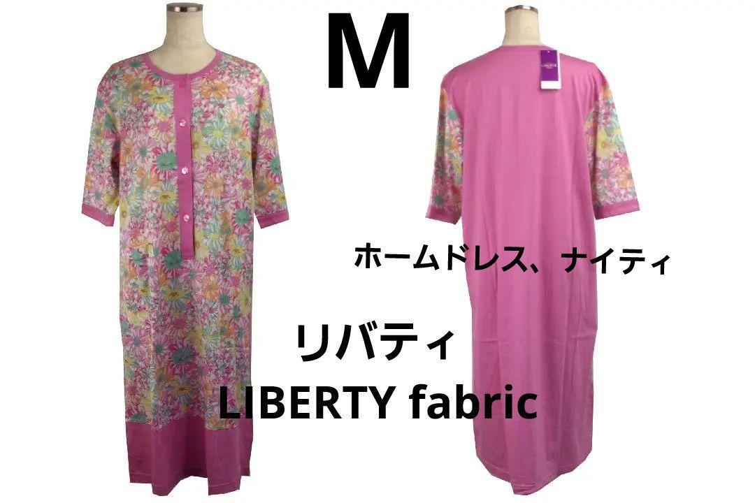 ●リバティ/ Amour using LIBERTY FABRICLIBERTYの半袖ナイティ・ホームドレス、新品です。サイズはM、バスト79-87cm。実寸で着丈約108㎝。素材は綿100%で伸縮性があります。色はピンク。正規ライセンス会社扱い品の日本製。定価¥17600のお品です。