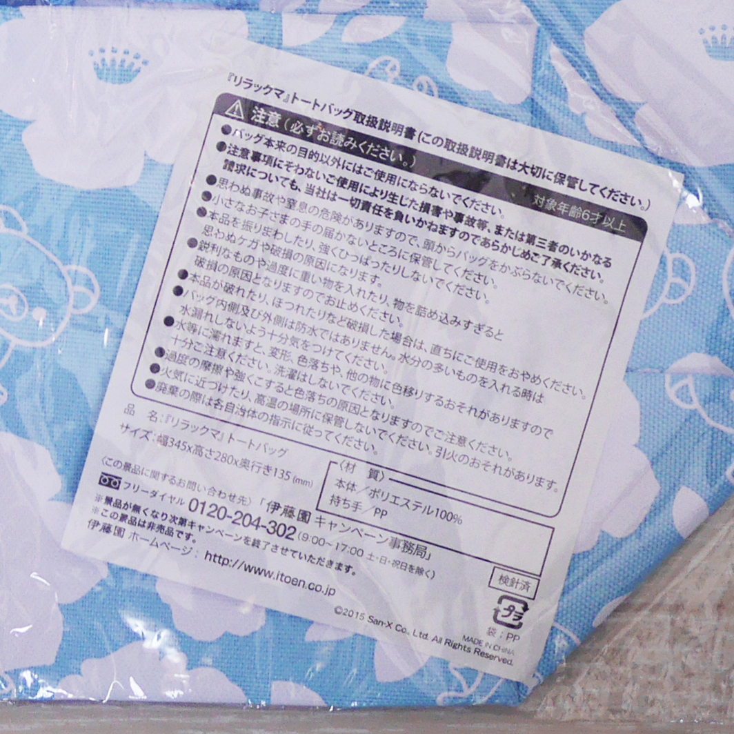 リラックマ × 伊藤園 の トートバッグ (水色)です。