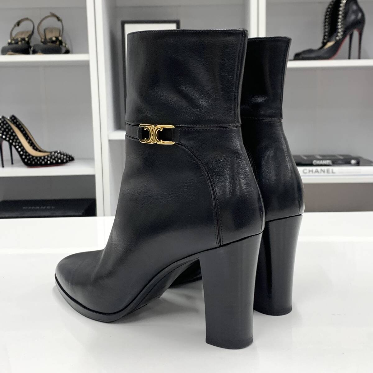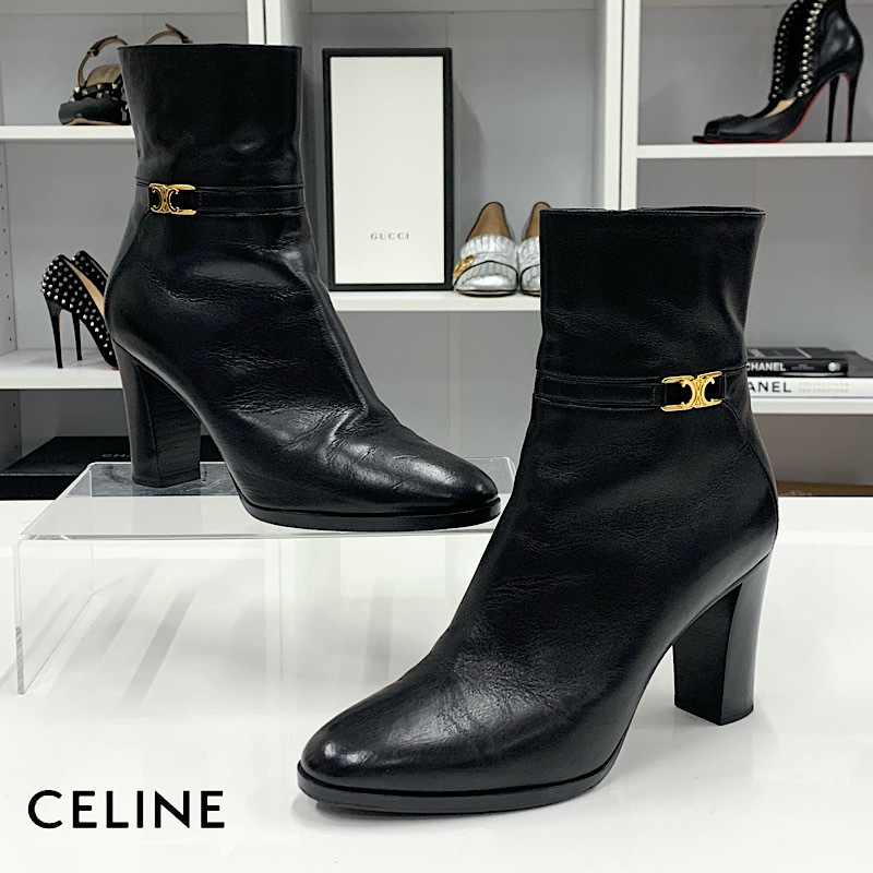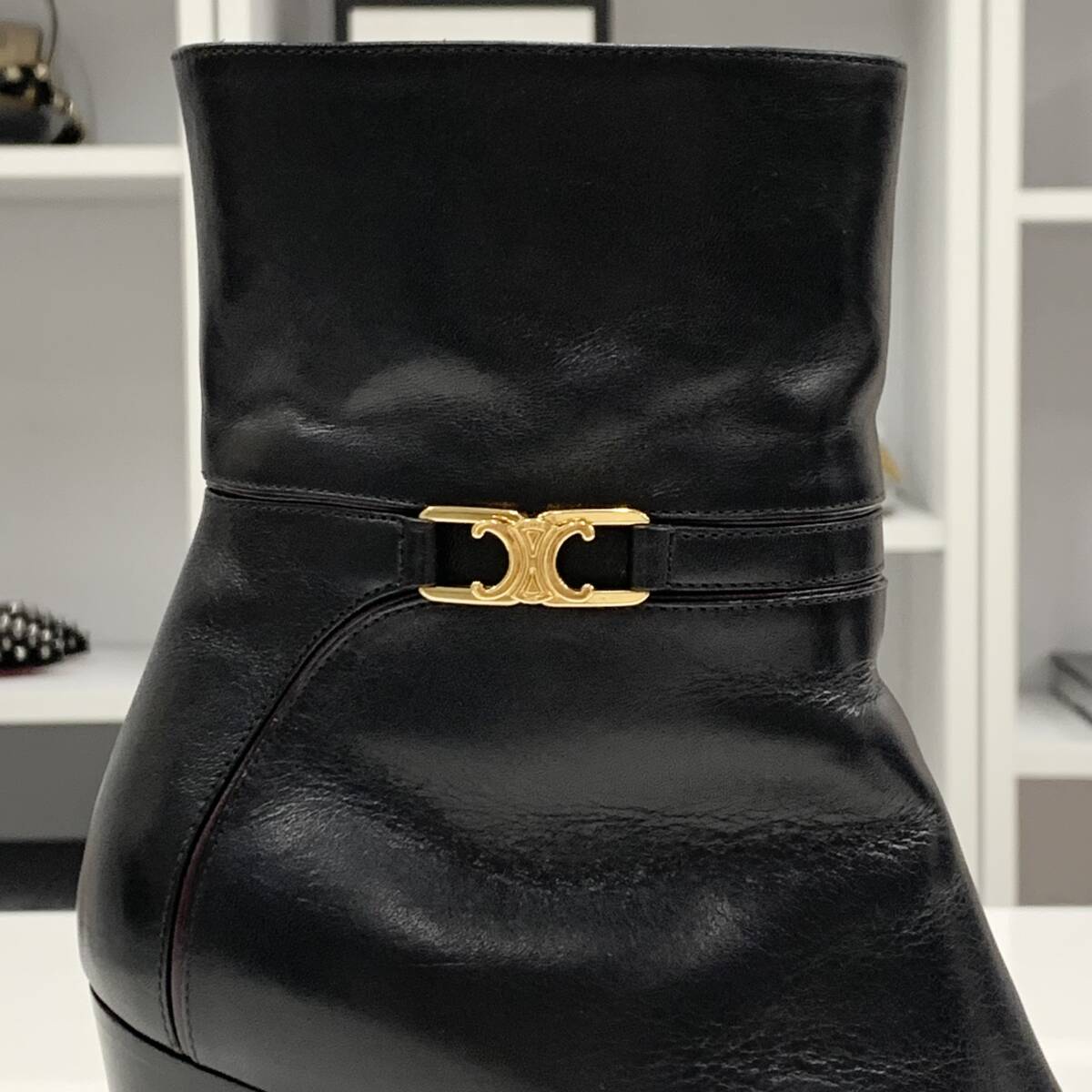 セリーヌ レザー トリオンフ ショートブーツ ブラック