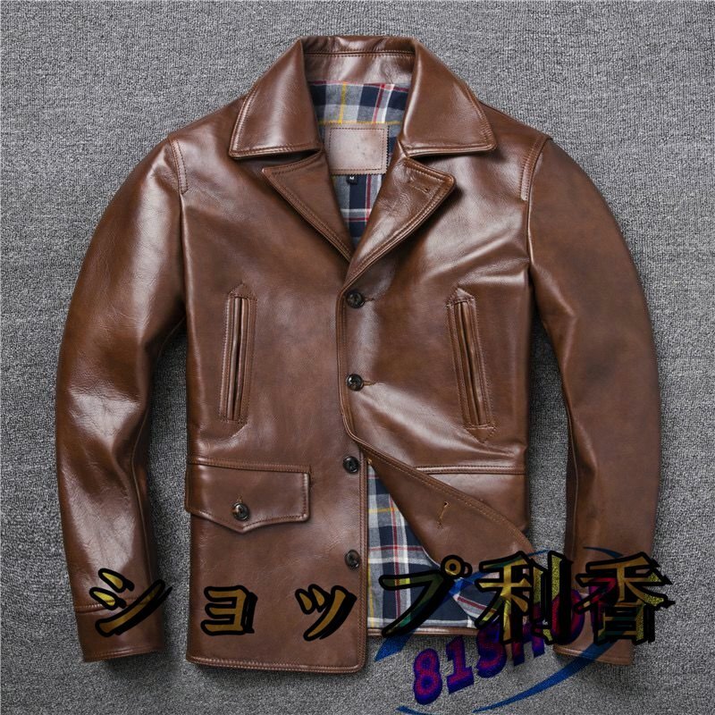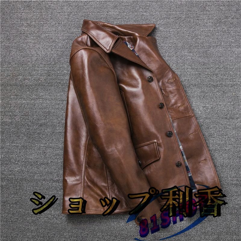 メンズファッション コート ロング レザージャケット 馬革 カーコート 革ジャン 本革 ライダースジャケット S~5XL