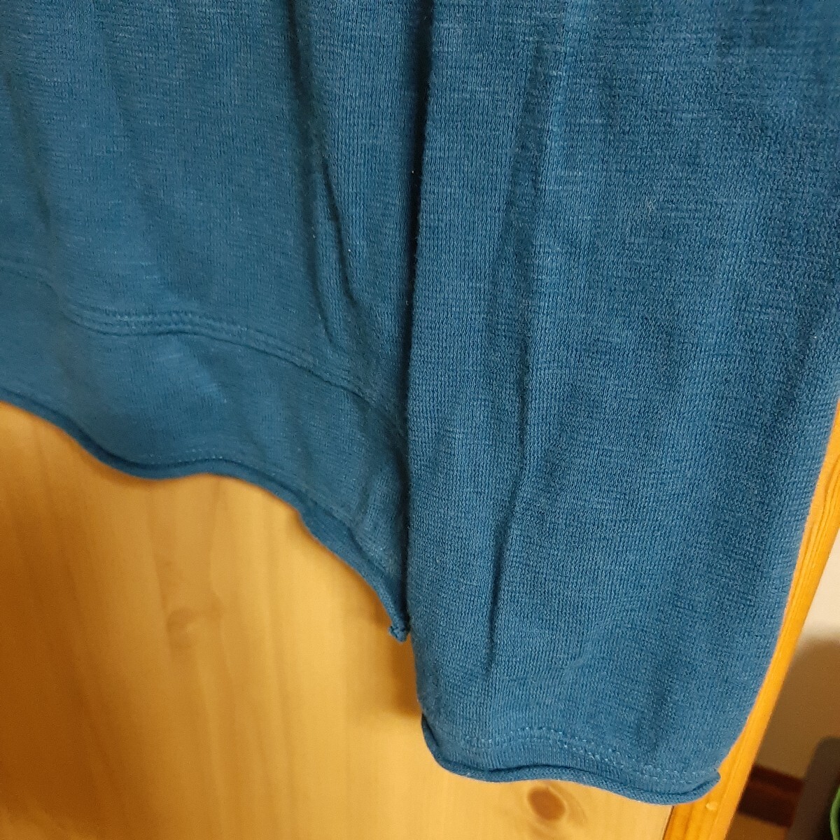 COXのブルーグリーンの首まわりのレース使いがアクセントのヘンリーカットソー*