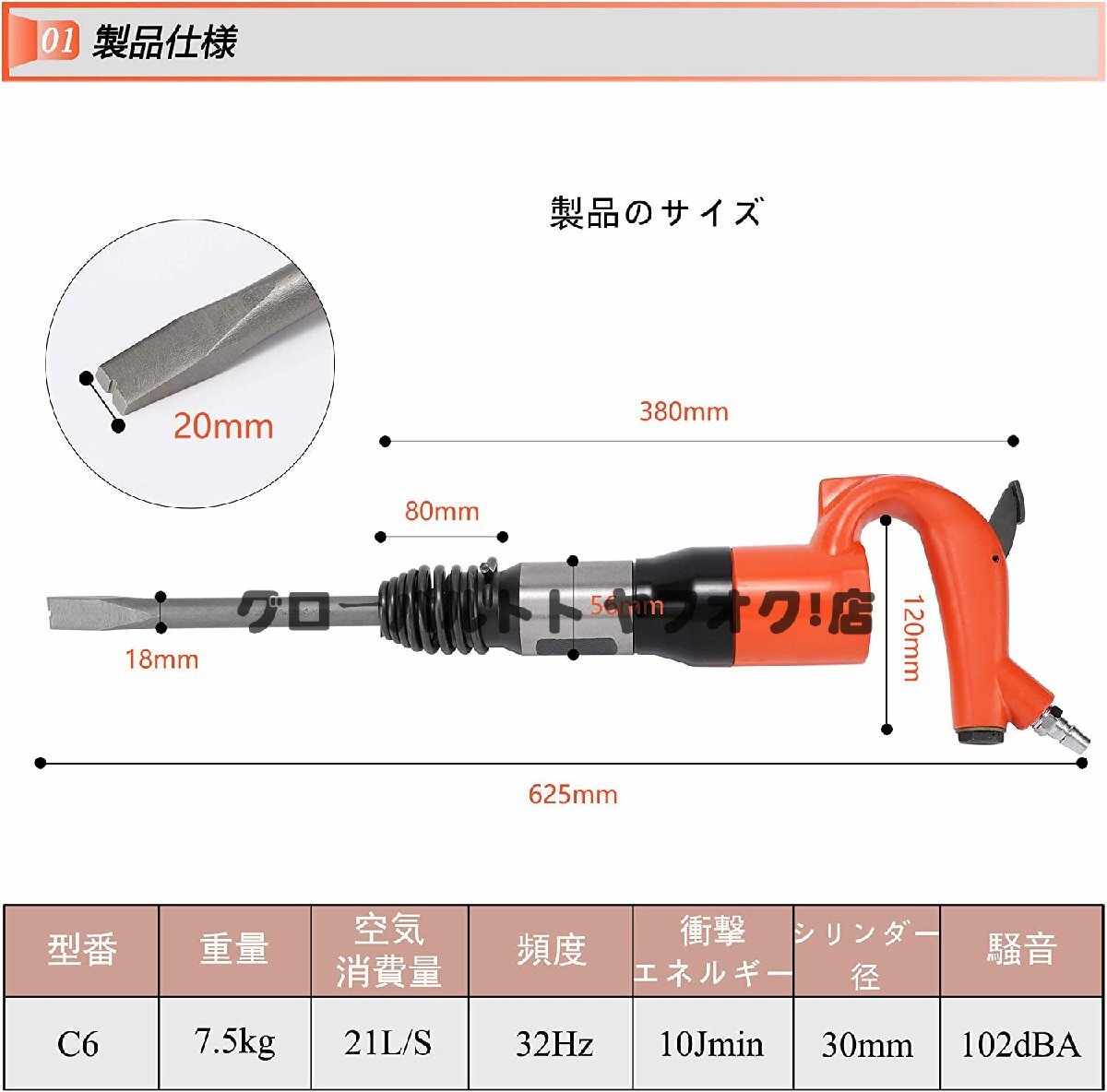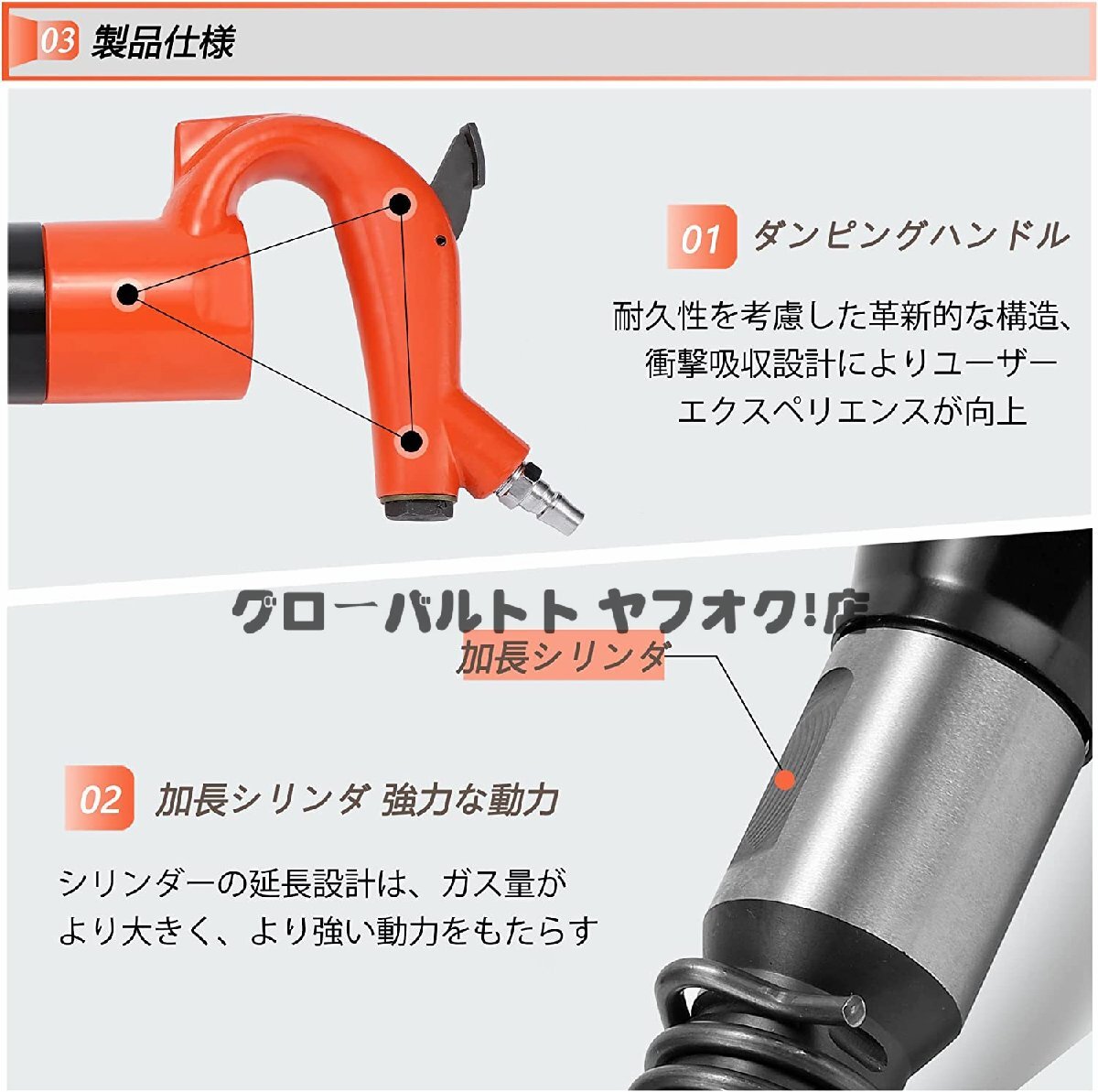 【仕様】材質:高硬度合金 衝撃エネルギー:10J/min 空気消費量:21L/S min、頻度:32Hz/min シリンダー径:30mm