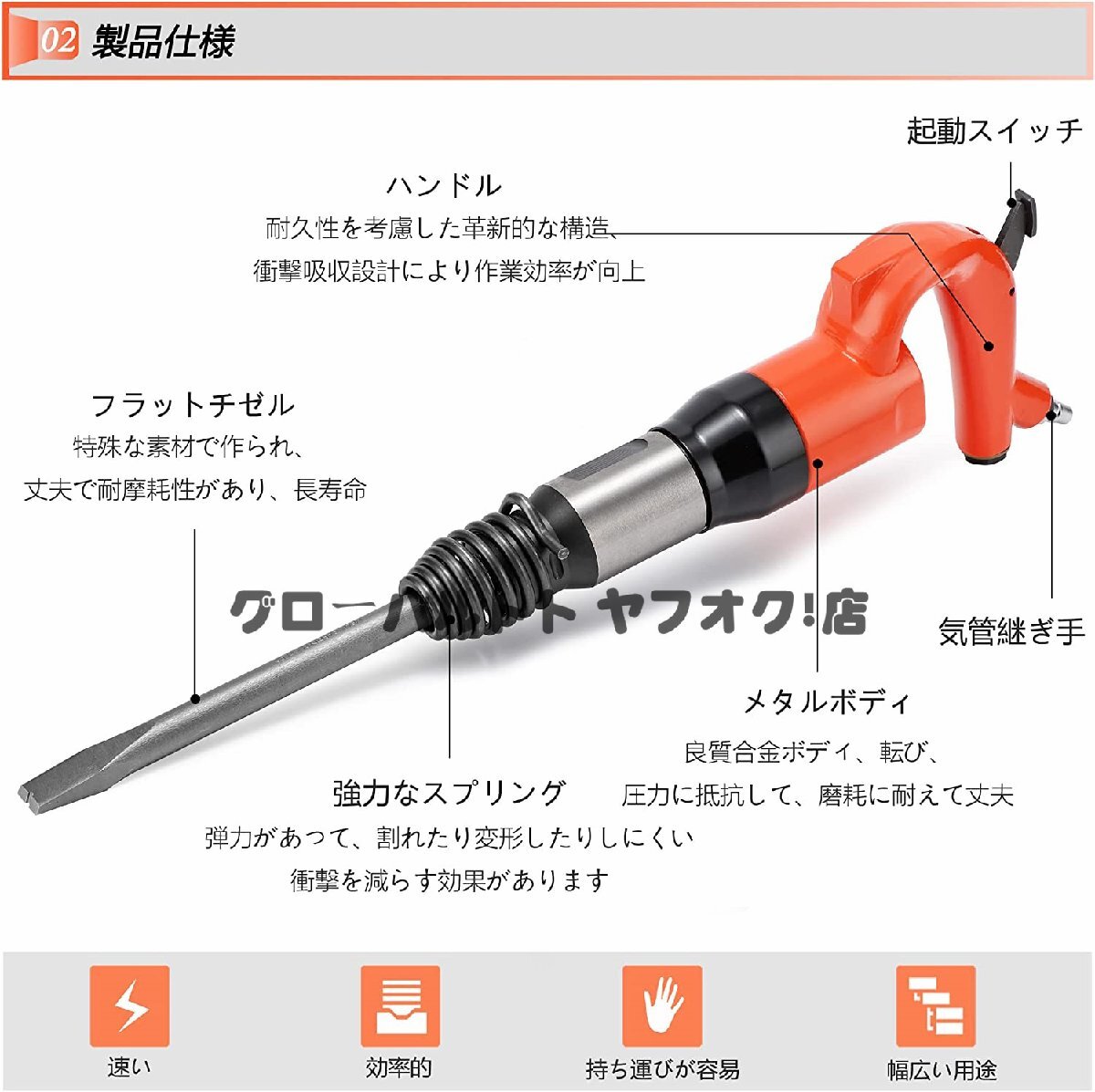 新品 エアーハンマー 空気圧ハンマー ポイントチゼル/フラットチゼル コンクリート モルタル 石材ハツリ作業 耐摩耗性 専用ケース付きS220