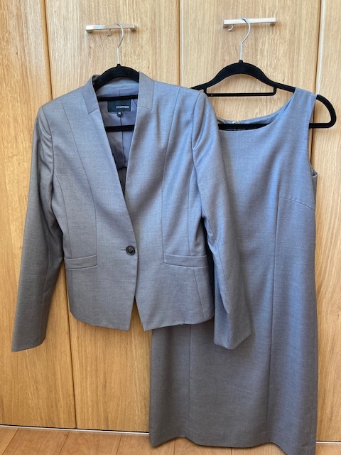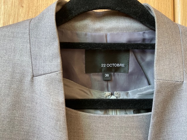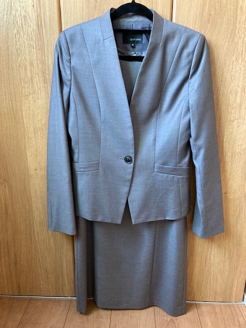 【美品】22 OCTOBRE◆ワンピース+ジャケットスーツ 36◆薄グレー◆手洗い可◆3シーズン可