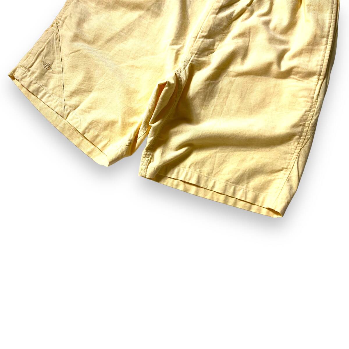 サイズ XS(66-74) 製品寸法 ウエスト68-74cm 股上29cm 股下20cm 腿幅29cm 裾幅29.5cm 素材 コットン100% カラー ライトイエロー系 コンディション 新品・未使用・正規品