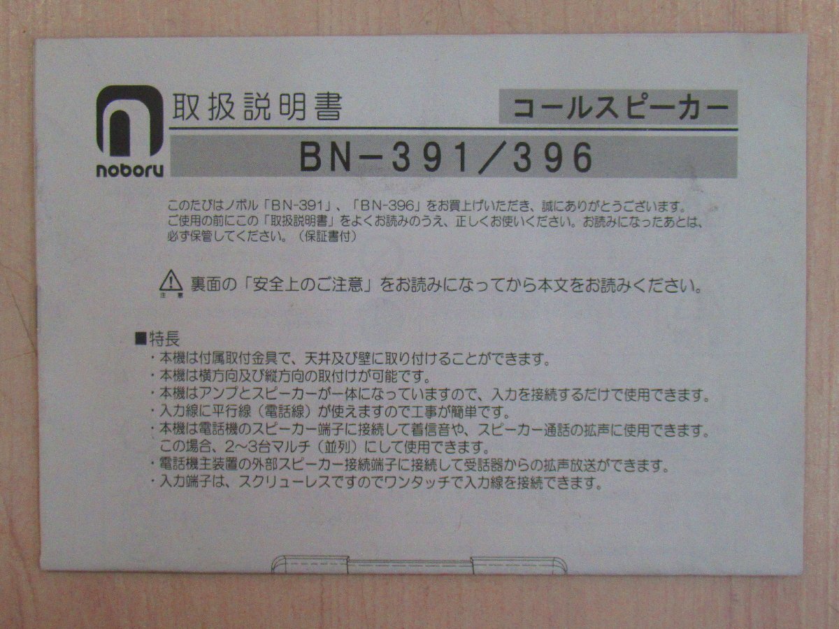 ◇ BN-396 × 1 noboru ノボル電機 コールスピーカ(アンプ内蔵型スピーカ) | ||