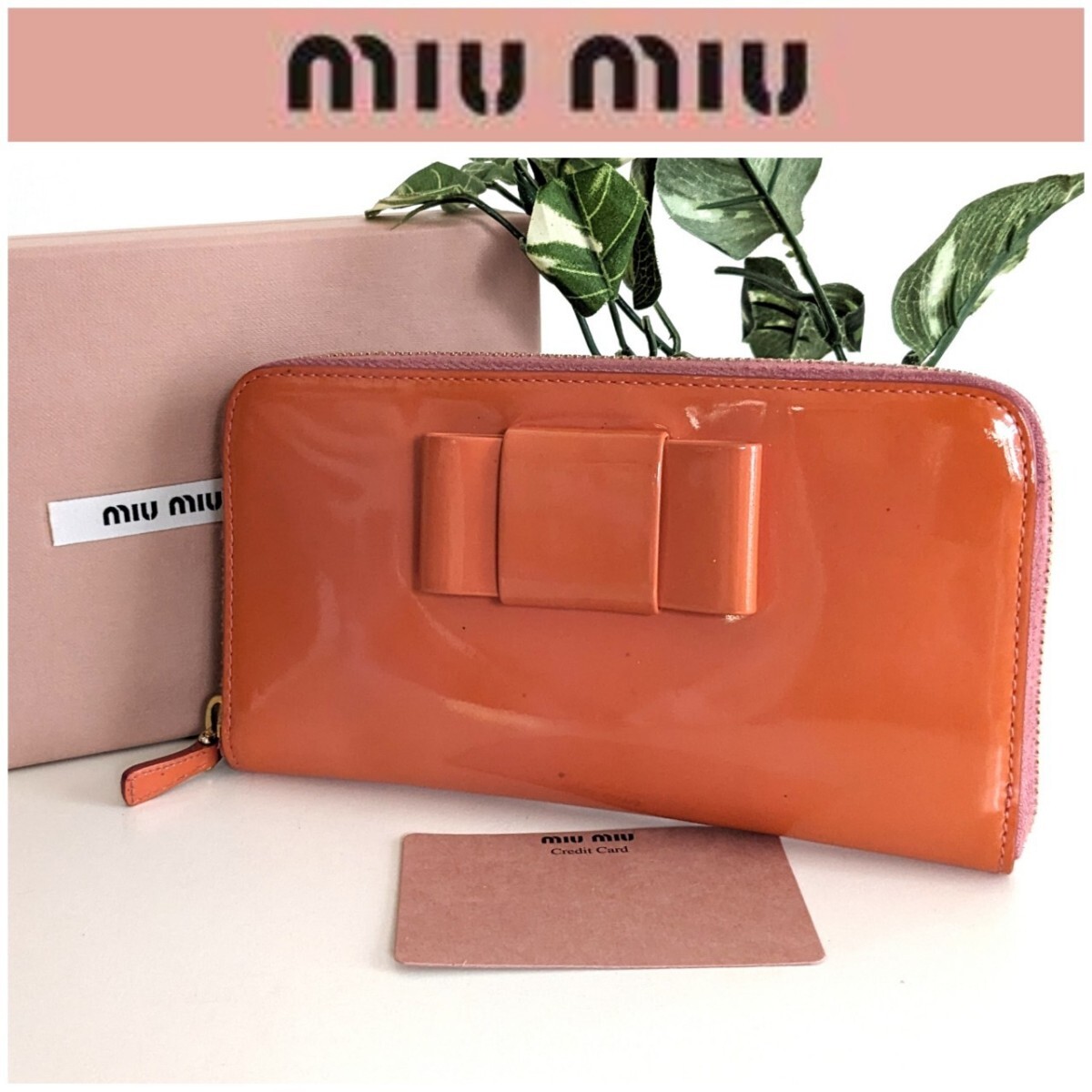 【商品】MIU MIU ミュウミュウ エナメル パテント レザー リボン ヴィンテージ アンティーク ウォレット ミニクラッチバッグ 鞄 ポーチ ミニバッグ ラウンドファスナー 長財布 ジッピーウォレット