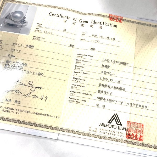 | パール デザインリング pt900 D0.08 8.9mm珠 12号 リング | |