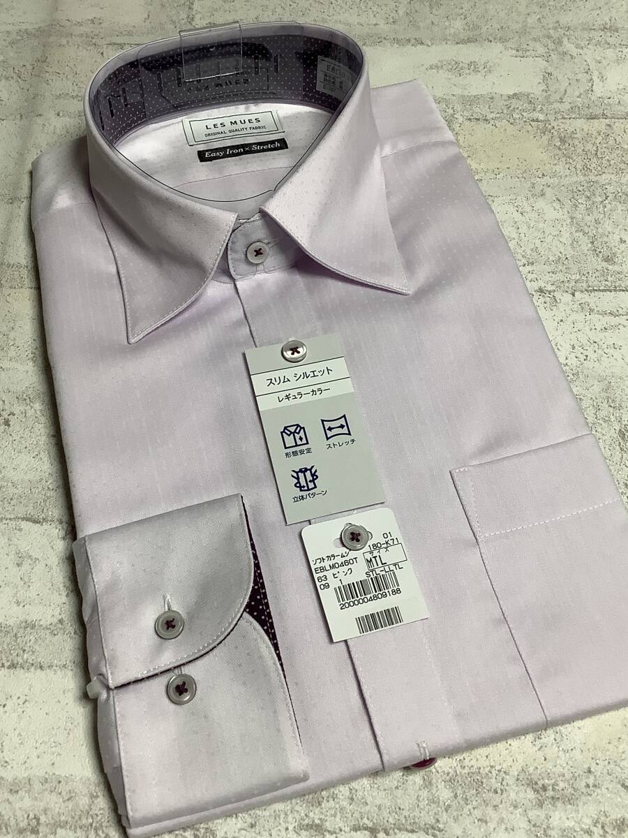 新品未使用★手の長い39-88長袖Mサイズ ピンクドットドビー生地 シルプルレギュラーカッターシャツ★ドレスシャツ 定価4,990