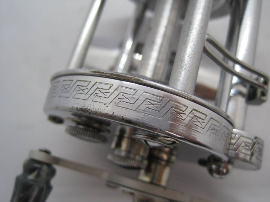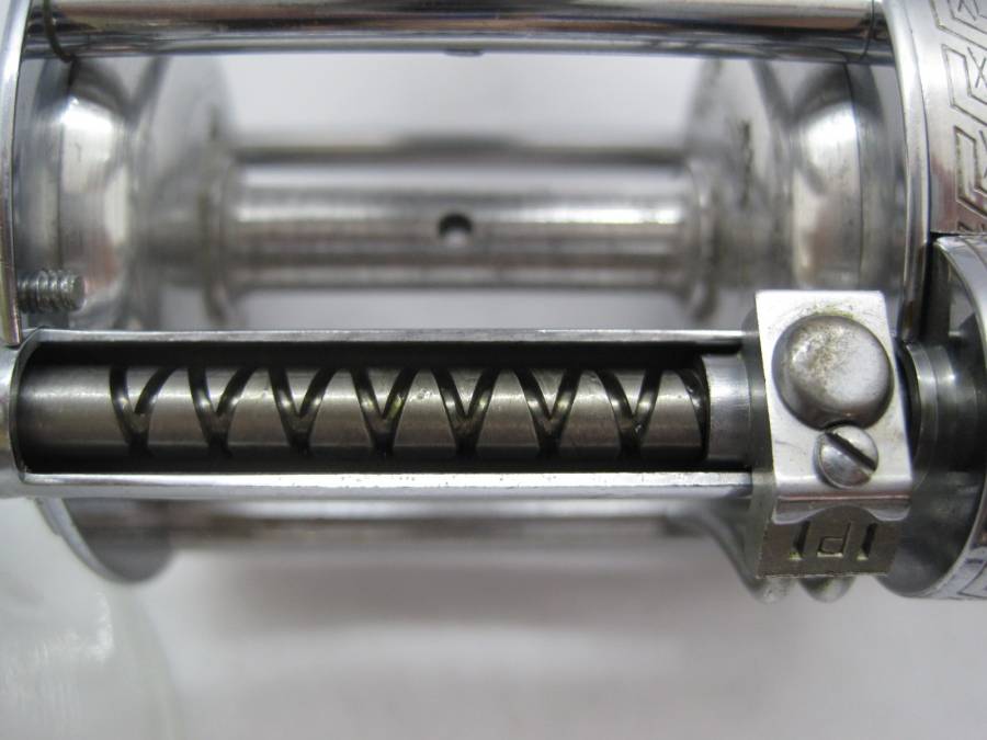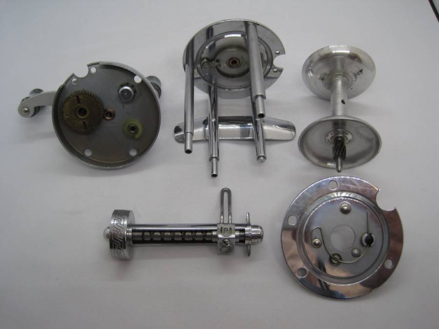 -ハンドルは、スープリウム用キャブハンドルへ交換されています。また、スプール軸受けキャップやネジの一部が60年代製のパーツに交換されています。従って、フルオリジナルではありませんが、それ以外のパーツは全て製造当時のオリジナルと思われます。