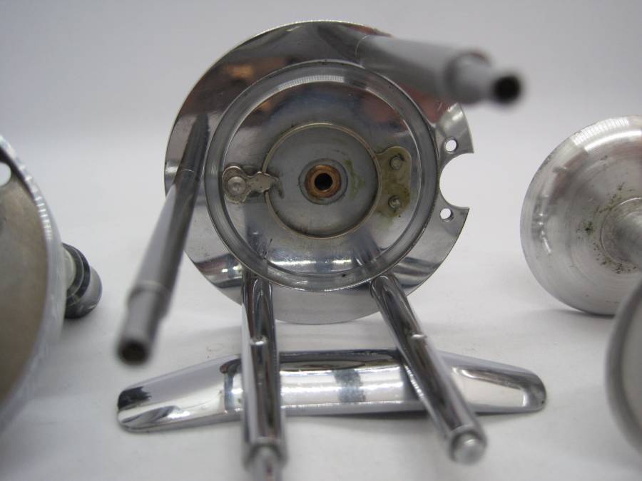 -サイドプレートやフート、ピラー、ハンドル等は丈夫な真鍮製で、ニッケルクロームめっきされています。スプールがアルミ製ですので、ハンドルを回した時の感触は非常に軽やかです。