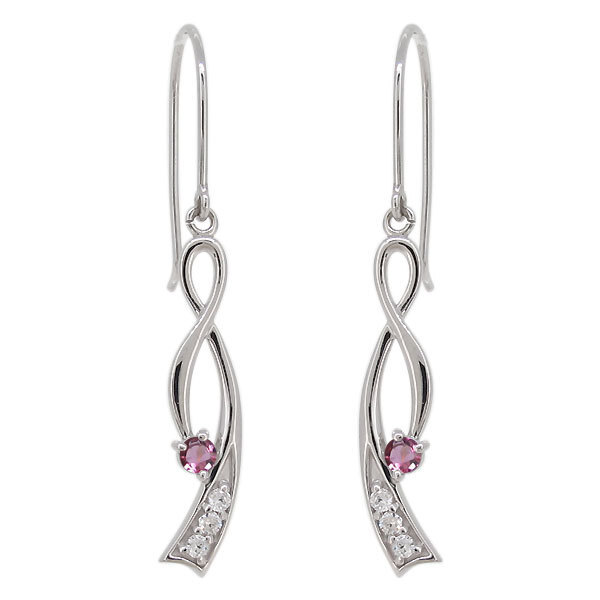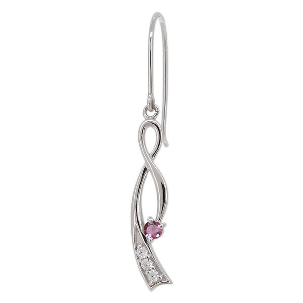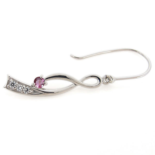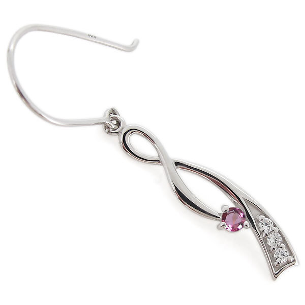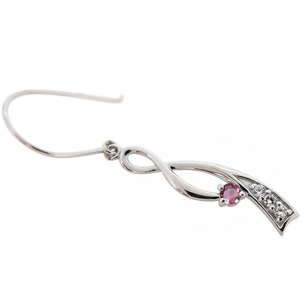 10月誕生石ピンクトルマリンを使用したプラチナ製の、インフィニティ(無限)モチーフのフックピアス(アメリカンフック)です。