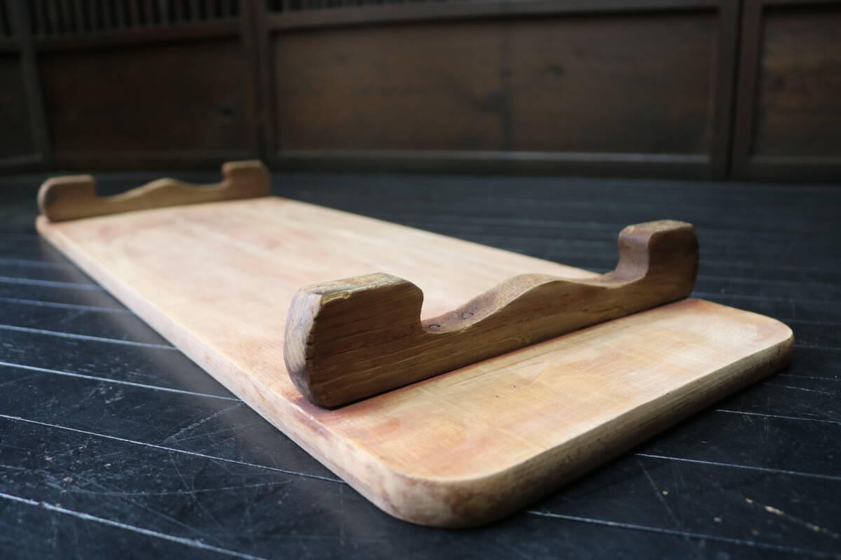 | 商品説明 | 《商品説明》 古い台、木の枯れた風合いが良い感じの餅板です。時代は大正~昭和の物です。 このお品は、塗りを落とし木地仕上げにしたナチュラルな感じが良いお品です。 天板は楢材で脚は栗材にて作られています。 クリーニング済ですので直ぐにご使用出来る状態です。 作業台としては勿論、花台ディスプレイ台としても良いと思います ナチュラルな仕上がりがアンティークらしい餅板作業台、お薦めです 《サイズ》 約76㎝(横)×約6.2㎝(高さ)×約27㎝(奥行) |