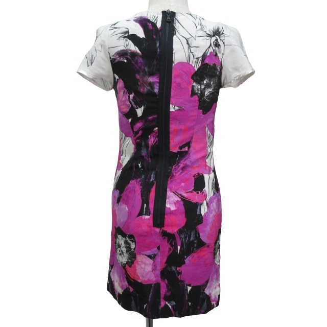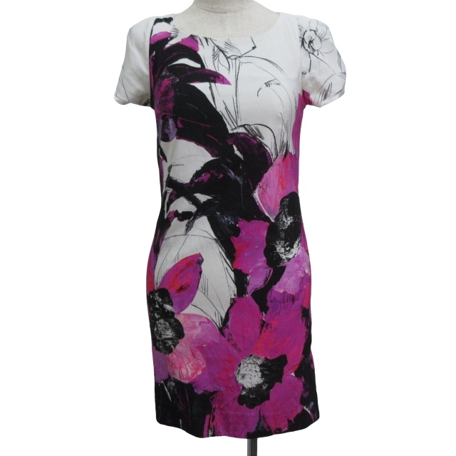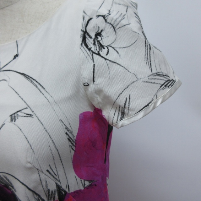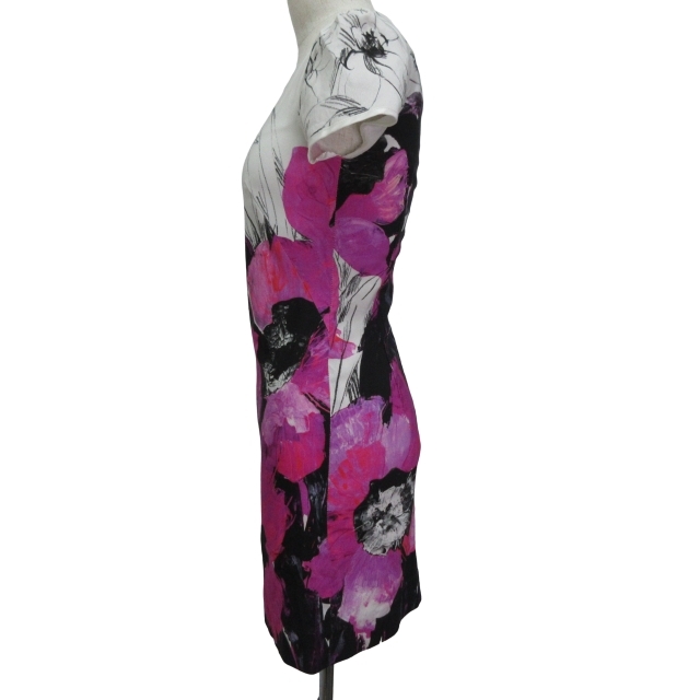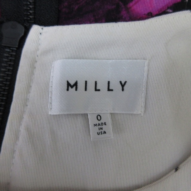 ミリー milly ワンピース 半袖 ひざ丈 花柄 白 黒 ピンク 0 XSサイズ 0511 レディース